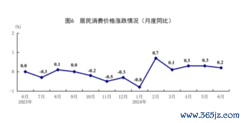 上半年,全国居民消费价格(CPI)同比上涨0.1%,一季度为同比持平。分类别看,食品烟酒价格下降1.4%,衣着价格上涨1.6%,居住价格上涨0.2%,生活用品及服务价格上涨0.9%,交通通信价格下降0.7%,教育文化娱乐价格上涨2.0%,医疗保健价格上涨1.4%,其他用品及服务价格上涨3.3%。在食品烟酒价格中,鲜果价格下降7.8%,鲜菜价格下降2.7%,猪肉价格持平,粮食价格上涨0.5%。扣除食品和能源价格后的核心CPI同比上涨0.7%。6月份,全国居民消费价格同比上涨0.2%,环比下降0.2%。