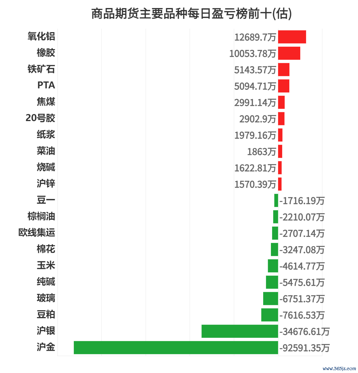 品种盈亏榜:今日商品期货上榜机构席位中氧化铝盈利第一,为12689.70万元。